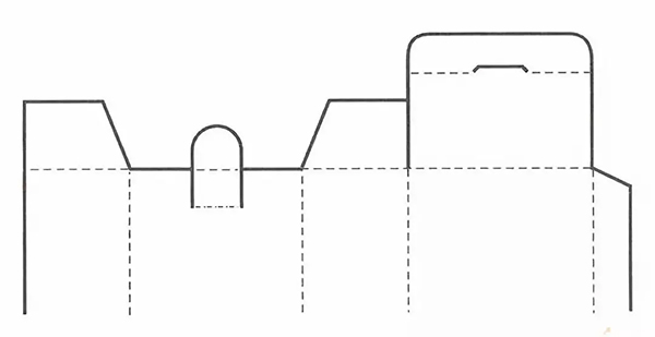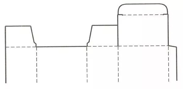 其盒盖有3个摇盖部分,主盖有伸长出的插舌,以便插入盒体起到封闭作用。设计时应注意摇盖的咬合关系问题。这种盖在管式包装盒中应用较为广泛。