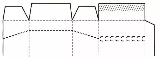 其特点是利用齿状裁切线,在消费者开启包装的同时,使包装结构得到破坏,防止出现有人再利用包装进行仿冒活动。这种包装盒主要用于药品包装和一些小食品包装中,像胶卷包装/纸巾抽纸包装盒目前也都采用这种开启方式。