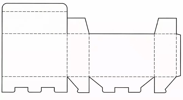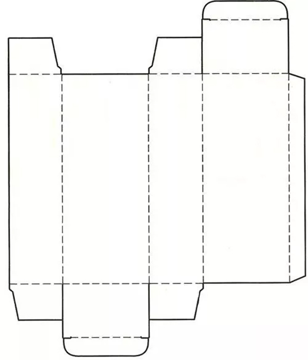 结构同摇盖插入式盒盖完全相同,这种设计结构使用简便,但承重力较弱,通常适合包装食品、文具、牙膏等小型或重量轻的商品,是较为普遍的包装盒设计结构。